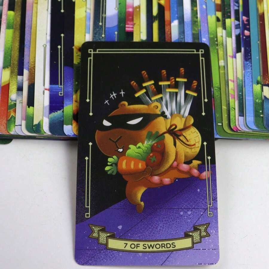 Deck-ul Capybarot este un tarot fantezist incantator, perfect pentru incepatori. Cufunda-te in lumea fermecatoare a capibarelor si descopera-le intelepciunea prin intermediul cartilor!