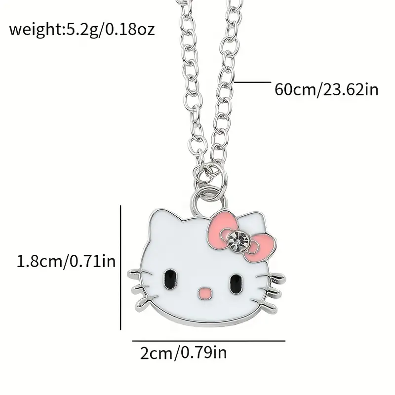 Perfect pentru iubitorii stilului kawaii sau pentru cei care apreciază accesoriile jucăușe, colierul cu pandantiv „Hello Kitty” adaugă o notă luminoasă oricărei ținute – ideal pentru a exprima optimismul, gingășia și pofta de viață.