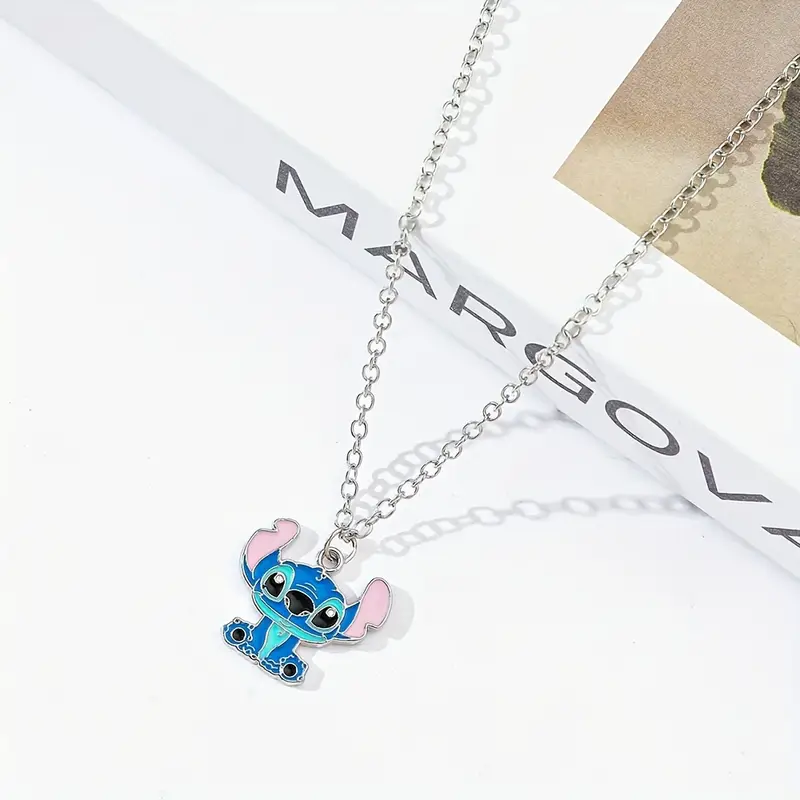 Acest colier adorabil, cu pandantiv reprezentându-l pe Stitch, aduce un strop de bucurie și culoare în orice ținută.