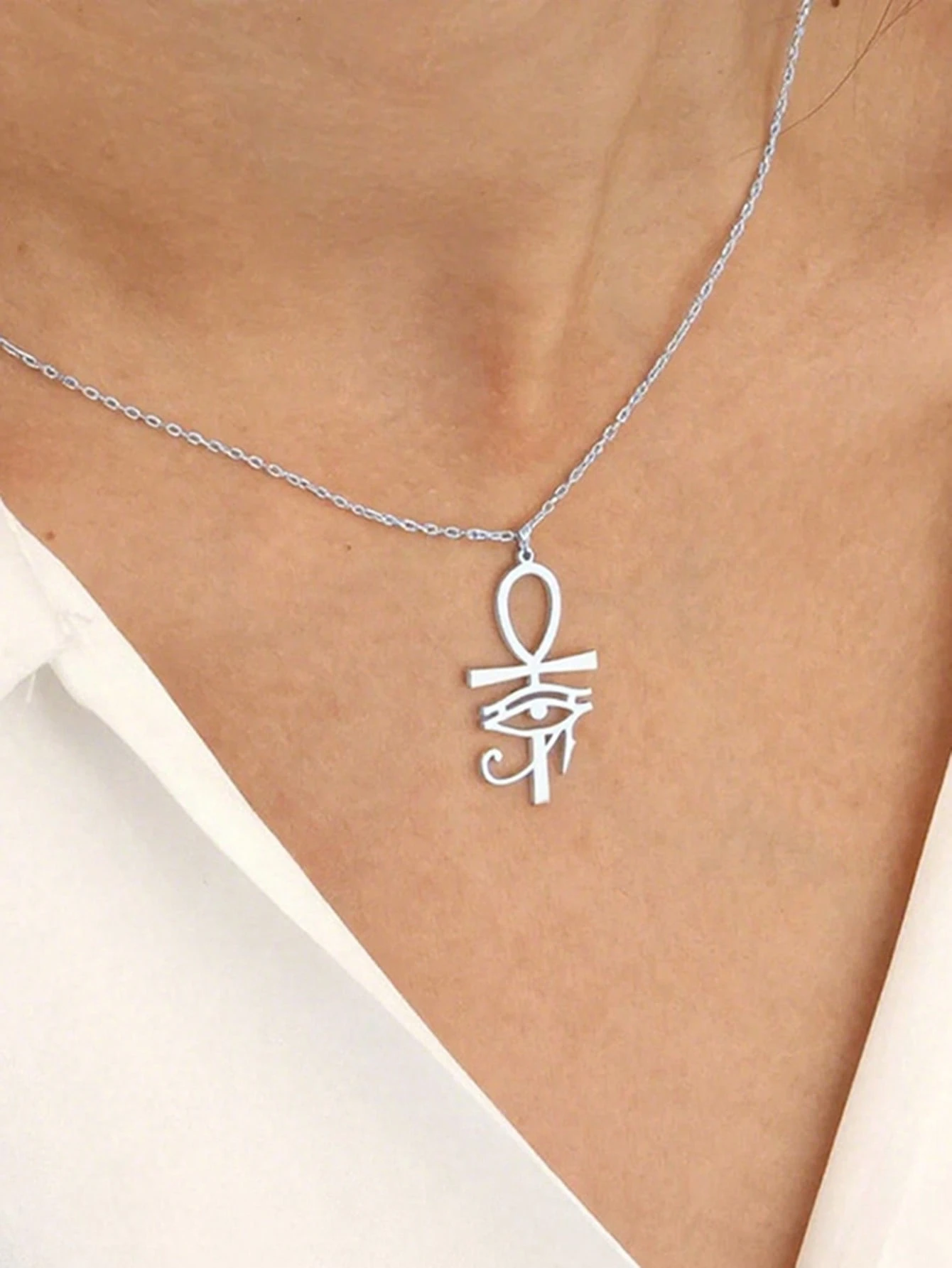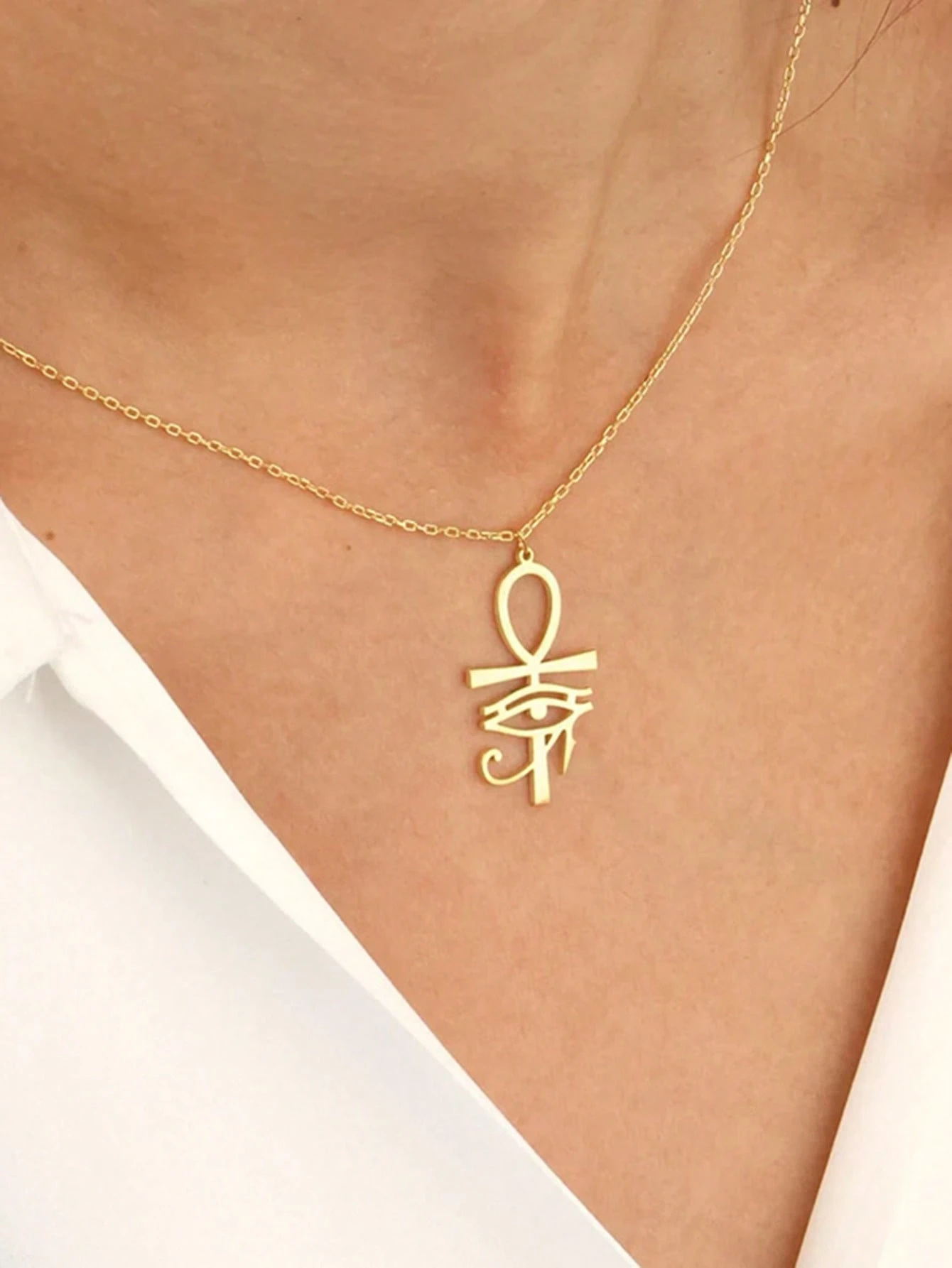 Colierul metalic cu pandantiv Ankh + Eye of Ra este un accesoriu cu un puternic impact vizual și o simbolistică profundă, inspirată din misterele Egiptului antic. Îmbinând două dintre cele mai cunoscute simboluri egiptene, acest colier devine mai mult decât o simplă bijuterie – o expresie a protecției, energiei și echilibrului spiritual.